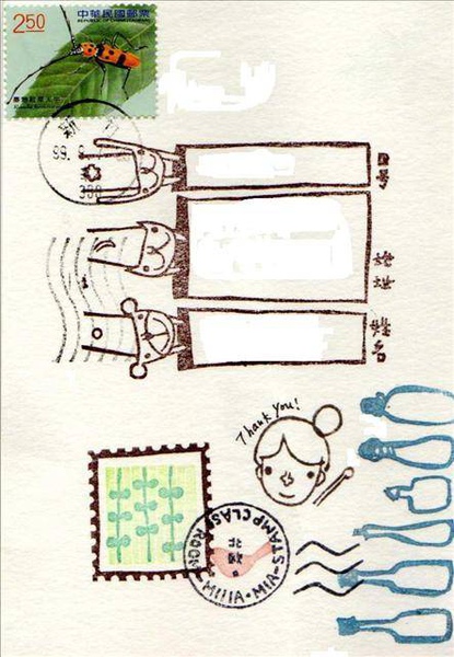 明信片是Mia幫我蓋同學那天刻的章寄回來給我的感謝Mia幫我找同學蓋我那粉空的明信片